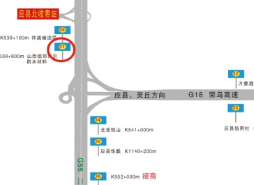 | 所在地区 | 山西省>朔州市>山阴县 | 媒体地址 | 运高速G55主线与荣乌高速G18丁字路口北100米太原方向 | |||